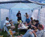 Heute war nur faullenzen angesagt. Außerdem ist heute Männertag. Haben auch schon eine Runde über den Platz gedreht. Doch fehlen noch viele Autos. Aber so langsam drudeln alle ein. Ansonsten haben wir uns schön gesonnt (Super herliches Wetterchen). Am Abend haben wir den Grill angeschmissen (wie so viele andere auch) Waren auch im Festzelt, aber bei diesen Preisen (Bier: 5,00 DM) vergeht dir der Durst.