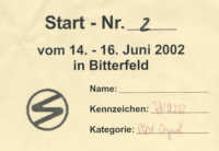 )) haben wir (Chris, Andrea, Anja, Jan) uns dann mit an die Orientierungsfahrt gemacht. Das war richtige Knochenarbeit...sehr, sehr lang & schwierig...nach VIER STUNDEN und 120KM kamen wir dann endlich wieder beim Treffen an. Keiner von uns hatte noch Lust Fragen zu beantworten. Aber die Strapazen hatten sich voll gelohnt - zweiter Platz!!. *Jubel* Während der Orientierungsfahrt traffen wir weitere Leute (Jörg, Bernd Bond und Diana) von unserem Club. Auch sie nahmen an der Orientierungsfahrt teil (7. Platz & 200KM). In der Zwischzeit hatten sich Hartmut und Sybille (während alle anderen auf Orientierungsfahrt waren) zum Treffen dazugesellt! Am Abend - nach leckerem Grillen - schauten wir mal über das Bitterfelder Stadtfest. Christian erwies sich als Mutigster und fuhr mit dem Discoirgendwas... mit ner richtigen Kotzmühle eben...Wieder zurück auf dem Treffen liesen wir diesen Abend etwas ruhiger und gemütlicher angehen.