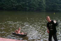 Nach dem Rundgang durch die Heimkehle und zwei beeindruckenden Lasershows ging es nun - wie auch schon im vergangenem Jahr an den Kunstteich Wettelrode. Während sich unsere Gäste austobten bereiteten wir das Mittagessen vor: 50 leckere Wüstchen und 50 noch leckere Würstchen! Diese waren dann auch schnell weggefuttert. Danach war erst einmal relaxen in der Sonne angesagt. Bei cooler Musik (mit freundlicher Unterstützung von DJ Örny - siehe www.dj-oerny.de), "Badewannenrennen", Paddelboot - Fahrten und einer ganzen Menge Süßigkeiten verbrachten wir den ganzen Nachmittag bei strahlendem Sonnenschein mit unseren russischen Gästen am Kunstteich.